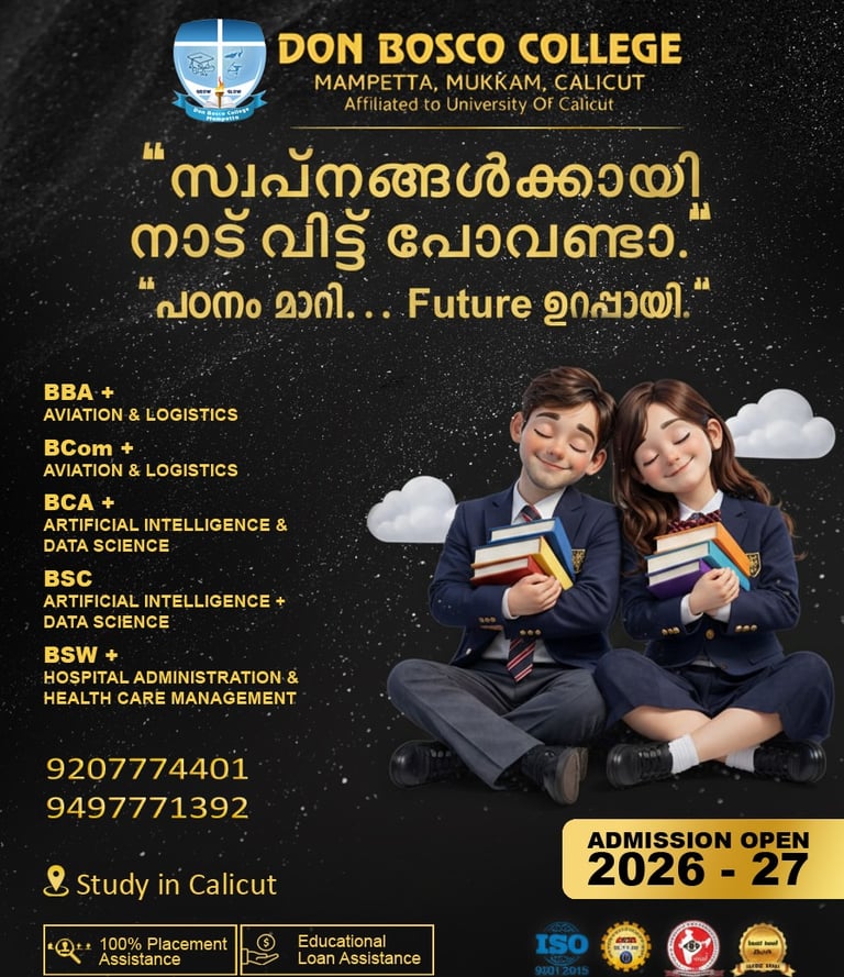 Don Bosco College, Mampetta with its motto “Crescat et Floreat” (Grow and Glow) aims at imparting quality education to its beneficiaries. The College is part of the worldwide Don Bosco Institutions present in 133 countries, and is affiliated to the University of Calicut, Kerala